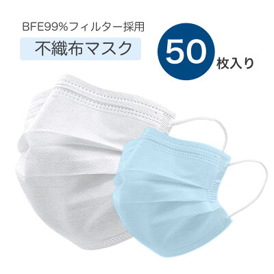 【50枚入り】 マスク 50枚 男女兼用 三層構造 不織布マスク ブルー ホワイト 青 白 レギュラーサイズ 三段プリーツ 花粉対策 大人用 在庫あり 使い捨て softfit mask 【お一人様6点まで】