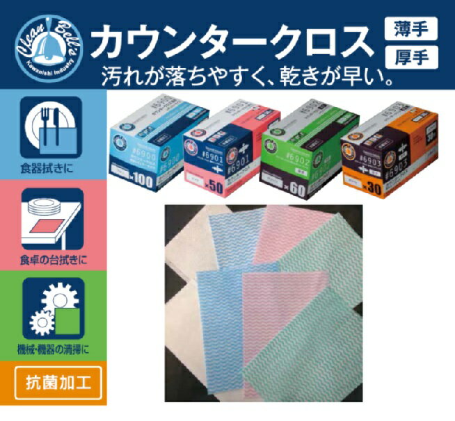 ※マスクではありません※ 川西工業(株) #6900 業務用カウンタークロス 薄手 レギュラーサイズ(100枚入) ピンクJAN:4906554144459